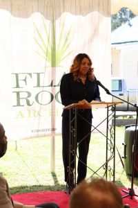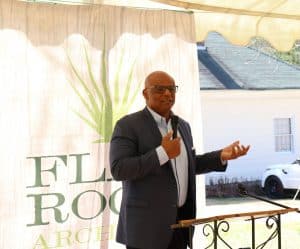 On February 26th, the Flat Rock Archives celebrated the reopening with community members and officials, including Flat Rock descendant and football great Warren Moon. Patsy Moon, Warren’s mother and a member of the Flat Rock community, could not attend due to health reasons, so event organizers called her partway through the event. She spoke to the gathering via speakerphone and received a round of applause. Other speakers at the event included Congressman Hank Johnson (Georgia’s 4th Congressional District), Stonecrest City Councilmembers Mayor Pro Tem George Turner (District 4), Jazzmin Cobble (District 3) and Tammy Grimes (District 5) and members of the Flat Rock Archives board and staff. All speakers highlighted the importance of Flat Rock’s history and the value of this historic site in telling America’s story.