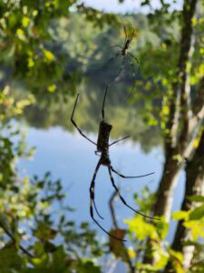 You may have recently been walking down a trail in the Arabia Mountain National Heritage Area (or really any nature area in Metro Atlanta) and hiked face-first into a spider web. It was likely a yellowish web which glistened gold in the sunlight, from a Joro spider—they like to build their complex, 3-dimensional webs in wide spaces to capture insects—a nuisance, but a generally harmless (albeit potentially frightening) encounter. Joro spiders will seldom attempt to bite humans and with their tiny fangs and weak venom, bites are not dangerous regardless. However, their harm may be greater to Georgia’s ecosystem than to us.